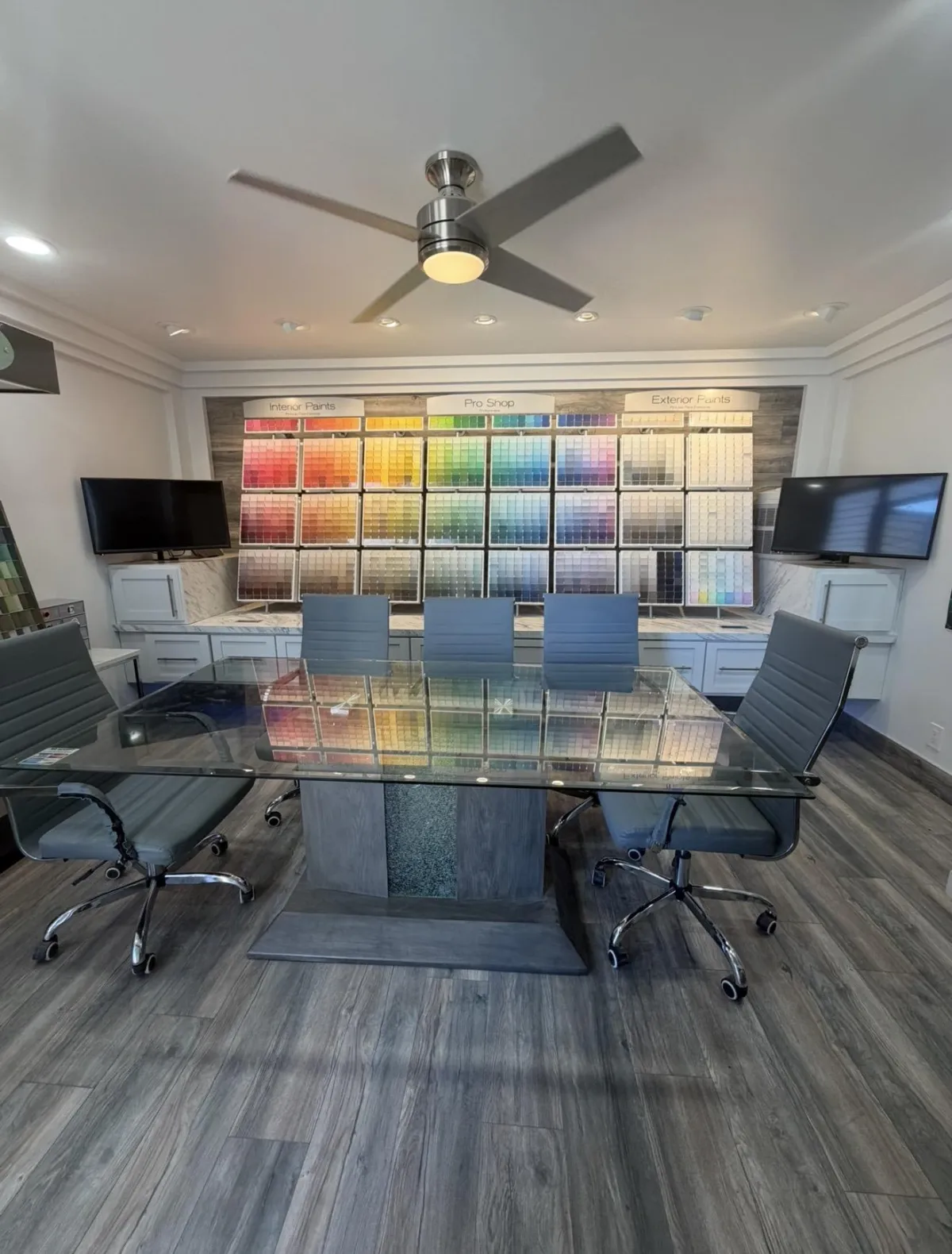 We evaluate surface condition, lighting, usage, architectural style, and client preference before recommending products. For high-end homes, finish selection is just as important as color — durability, sheen consistency, and long-term performance all factor into our recommendation.
